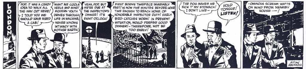 Here is a little bonus I found at the Charlie Chan Family Home site, which has some samples of both the dailies and Sunday strip. The first week of dailies finds Chan and “Number One Son” on the case.