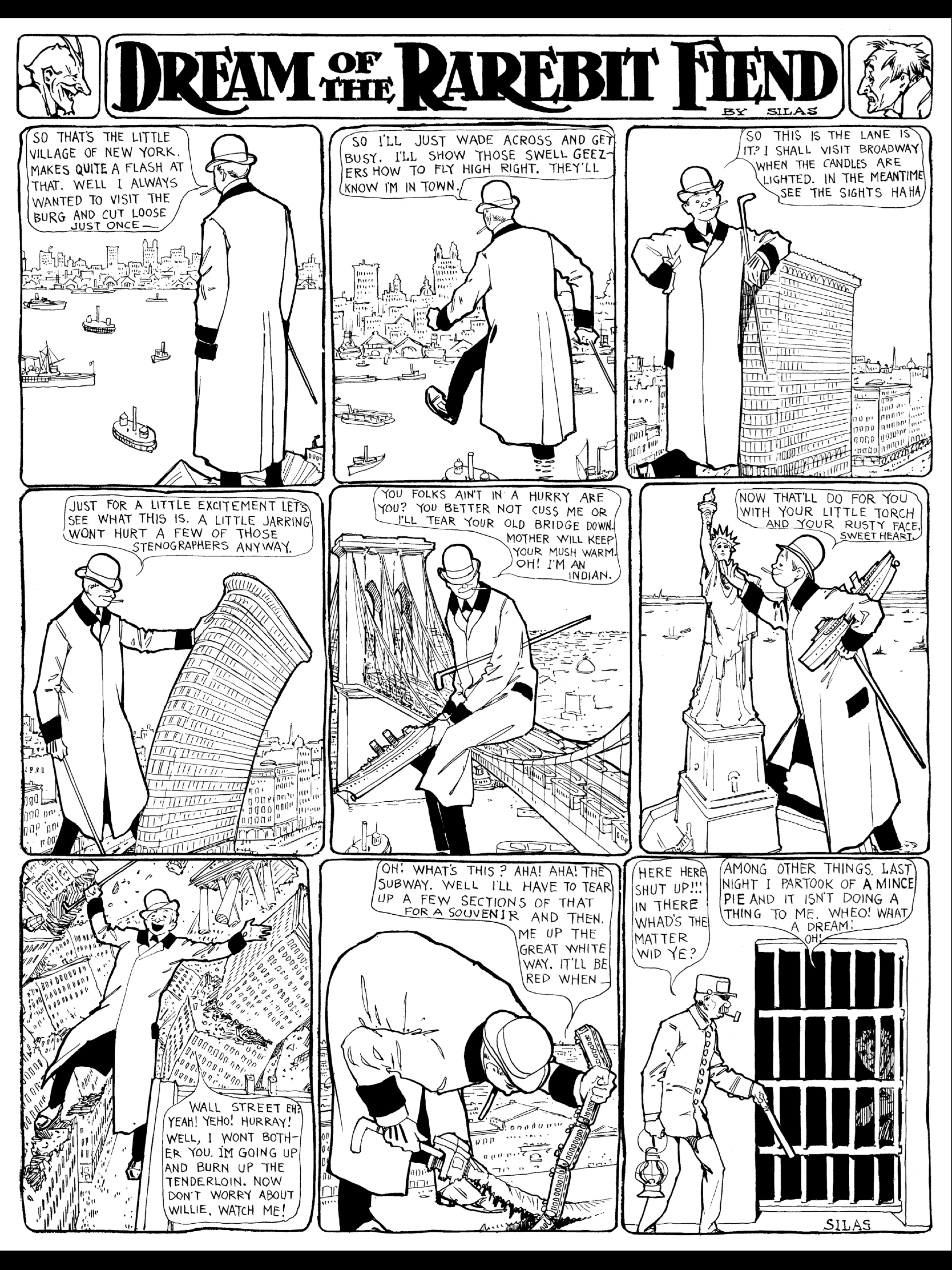 Along with Outcault in Yellow Kid, Dirks in Katzenjammer Kids and McCay in Little Nemo, Opper visualized Some of the inchoate forces of modernizing America – motion, energy, mechanical action – in ways that expressed and contained anxiety around them. Opper’s focus on the physical mechanics of motion, of showing it as a series of causes and effects, is just one way of expressing the idea of motion. In another post, I try to explore this point with a sample of early comic artists and how they interpreted motion.