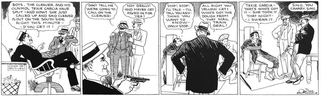 The suburban kid gang strip Just Kids by August Daniel “Ad” Carter ran 1923-1956, initially as a knock-off of Gene Byrnes’ Reg’lar Fellers. But it evolved into a more contemplative, nuanced projection of adult sensibilities into child characters that anticipated Charles Schulz’s Peanuts. Preceded by earlier iterations, Our Friend Mush, Mush Stebbins, and Just Kids in the teens, it was picked up by Hearst in the 1920s and it remained a bit of a beloved back bencher through much of its run.