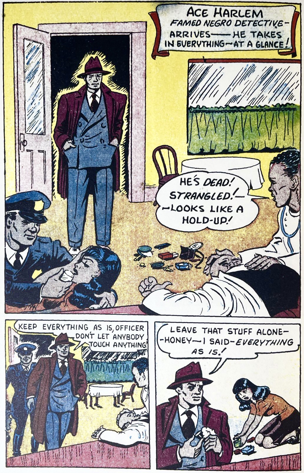 In each of these biographies I found their supporting and prior careers much more interesting, as does the author. Quattro cautions that he is not a formal historian, but he ably sketches in a blind spot for comic strip history – the Black newspaper, as well as the vagaries of freelancing for early comic book and pulp magazine companies and how it allowed many of these “invisible men” sustained careers. In taking a biographical approach to this cast, Quattro defies generalization about these artists’ perspectives and backgrounds. We enter a range of highly individual contexts, especially Black middle-class enclaves in cities like Oberlin, Charleston, Baltimore and more. We get glimpses of how Black newspapers, communities, artist groups lent support and connections for many of these men as they cobbled together artistic careers that moved across Black newspaper comics and editorial, community pamphlets, posters and fine art exhibits in addition to the burgeoning comic book industry.