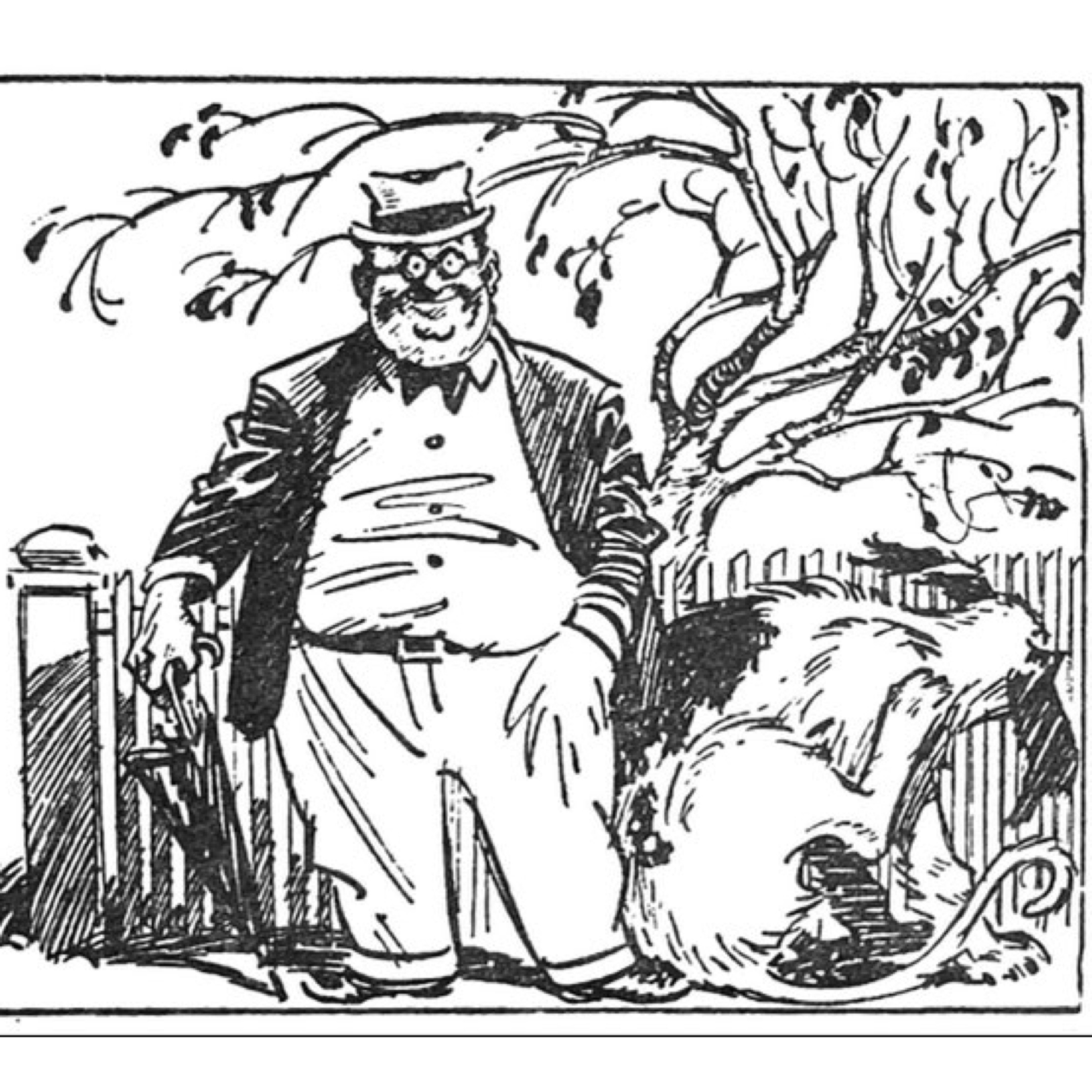 Clifford McBride’s portrait of the affable, accident-prone and corpulent Uncle Elby and his puckish oversized dog Napoleon is one of those great American comic strips that are about nothing. There is no adventure or much of an ongoing storyline to the Napoleon and Uncle Elby strip. Nor are there gags, verbal or physical, really. It is more a strip about everyday mishaps. Uncle Elby is proud of his new white suit, which an affectionate Napoleon meets at the the front door with muddy paws. Constructing a simple tent results in a tangled mess. Napoleon chases a fleeing rabbit, chicken, cat or whatnot (it’s a frequent theme), only to be chased by his prey in the end. Elby mows over one of his dog’s hidden bones, which conks him on the bean. Elby gets out of his car to open the garage door only to have it slam shut before he can drive through.