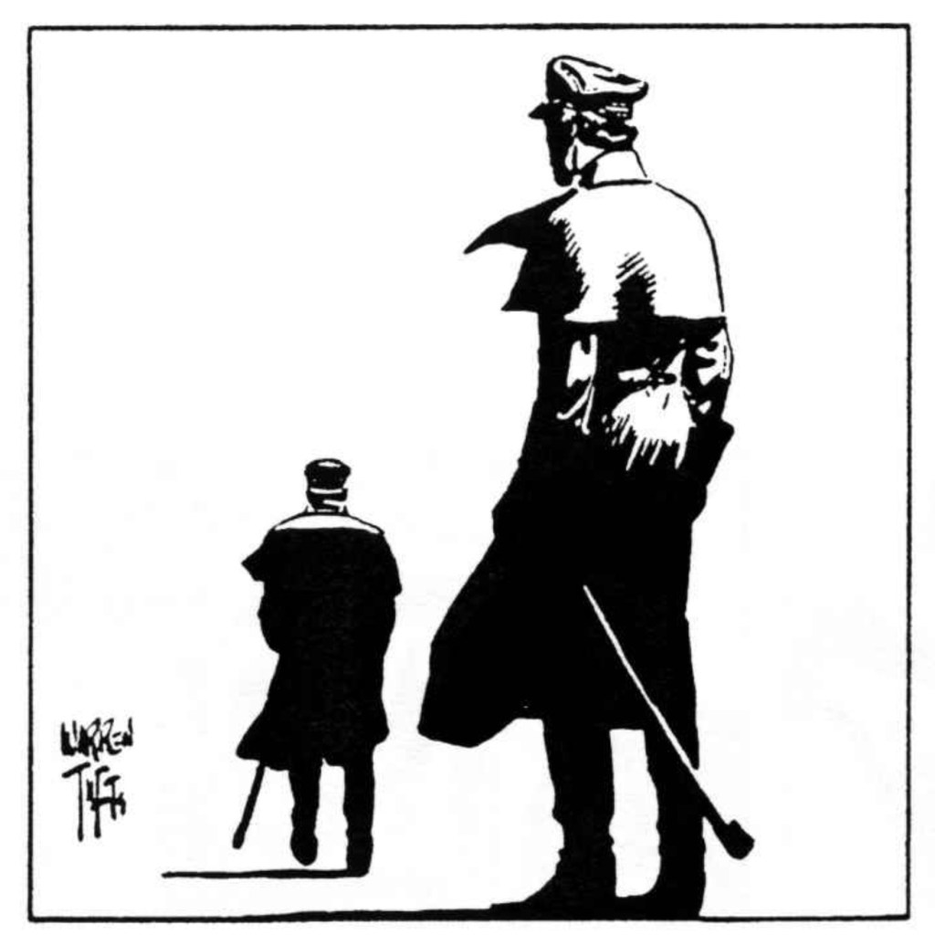 This is a wonderful panel sequence that illustrates Tufts’ mastery of angles, close-ups, timing, psychological realism. We hover around and then into Don Carlos’s thinking, which starts as argument and in the third ultra-close-up reveals itself to be mania. And the final panel pulls back to show the real world viscous consequences of that inner bitterness.