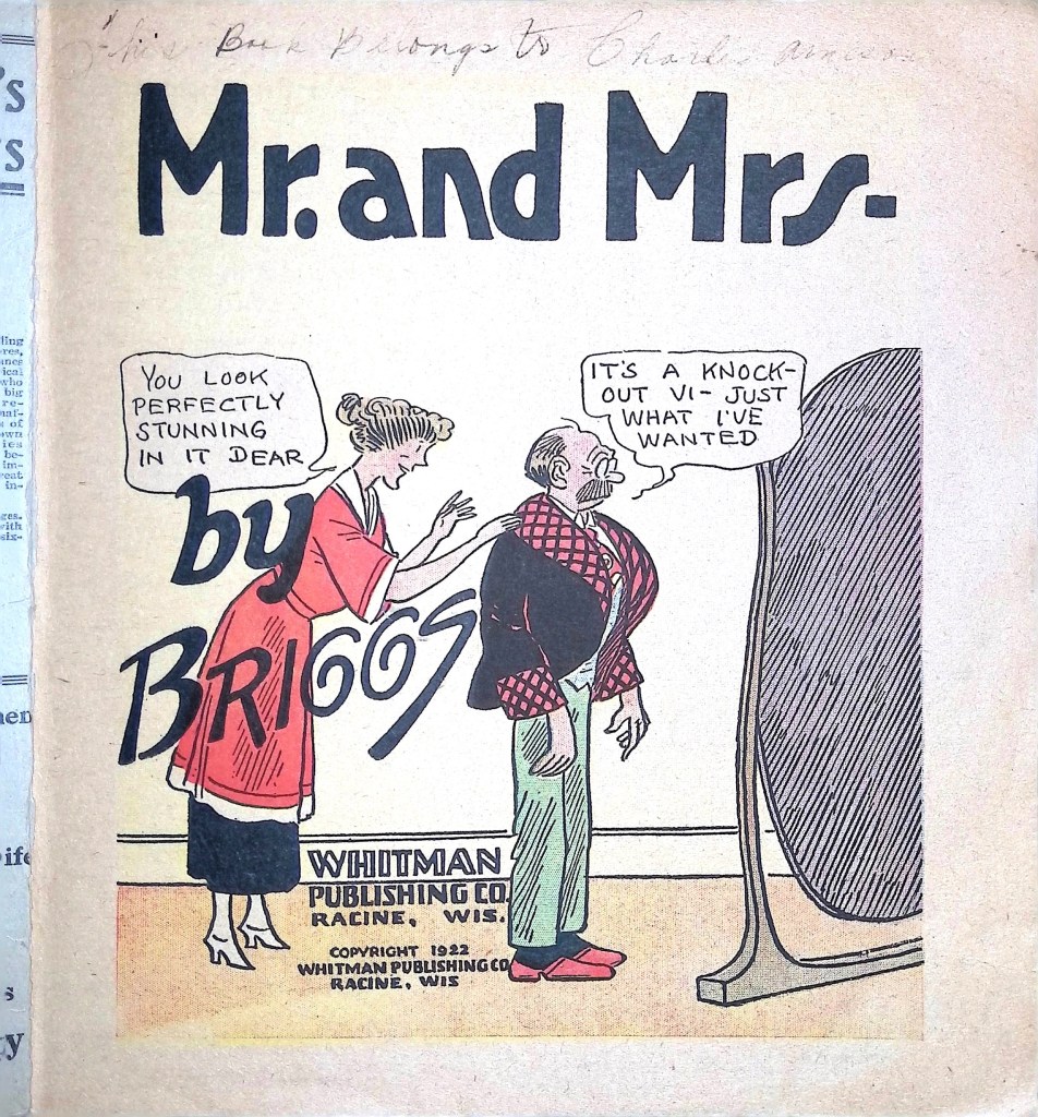 Clare Briggs’ contemplation of marital tension, Mr. and Mrs. (1919-1963) has always fascinated me both because of the harsh tenor of the strip itself and its source. When comics historians bother to remember Briggs (1874-1930) it is as quaint master of the nostalgic slice-of-life panels of small town childhood (The Days of Real Sport, When a Feller Needs a Friend, Aint’ It a Grand and Glorious Feeling). He is also credited with pioneering the format of the daily strip with recurring characters in A. Piker Clerk (1904) at Chicago’s American. But to contemporary newspaper readers in the 1910s and 1920s, he was among the best known, best-paid, and beloved of American cartoonists. His premature death in 1930 prompted both a single volume retrospective and a formidable seven-volume collection of his many strips.