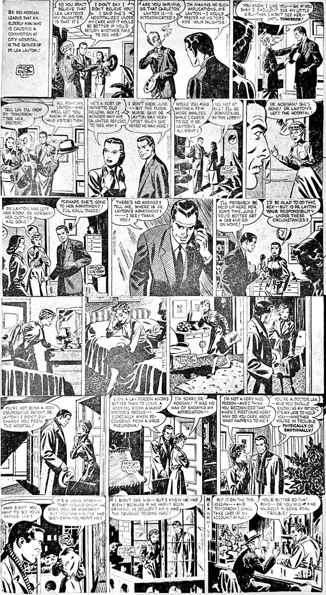 And while Rex Morgan M.D. may have had the look and emotional range of an illustrated high school health book, one of its strengths was educational. Dallis intended the strip to surface medical and public health issues, which over the years would include alcoholism, euthanasia, domestic violence and eventually AIDS.