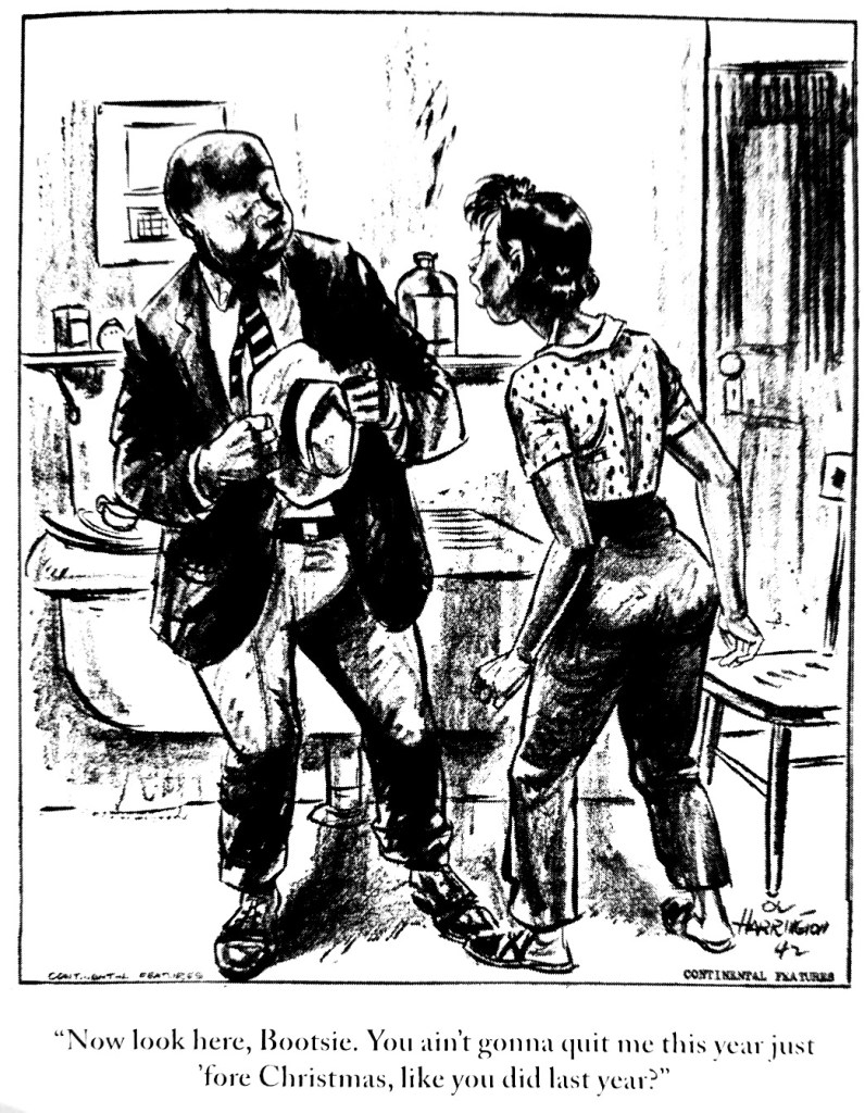 More noteworthy I think is the revival of Ollie Harrington’s Bootie’s War Years: A Dark Laughter Collection and Bootsie’s Big ’50s: A Dark Laughter Collection. Harrington’s long running Dark Laughter single panel series was widely circulated in the Black press and carried a sharp critique of racial inequity as well as an ongoing satire of Harlem cultural life. Trained at the Yale School of Fine Arts, Harrington was praised by Langston Hughes as our best Black cartoonist and targeted by McCarthy-era anti-communists. He self-exiled to Germany in the 1950s and eventually was caught behind the Berlin Wall. The Bootsie character was a chubby womanizer, a shirker and fast talker who most often was on the receiving end of scolds and skepticism by the surrounding community.