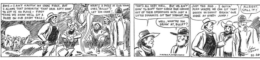 By his own admission, Sickles was not a master of plotting nor characterization. He channeled the simplistic adventure storytelling of potboiler films, especially westerns. He was making the story up as he went along. And he was much more focused on the immediate visual impact of the daily moment. It was all about the action.