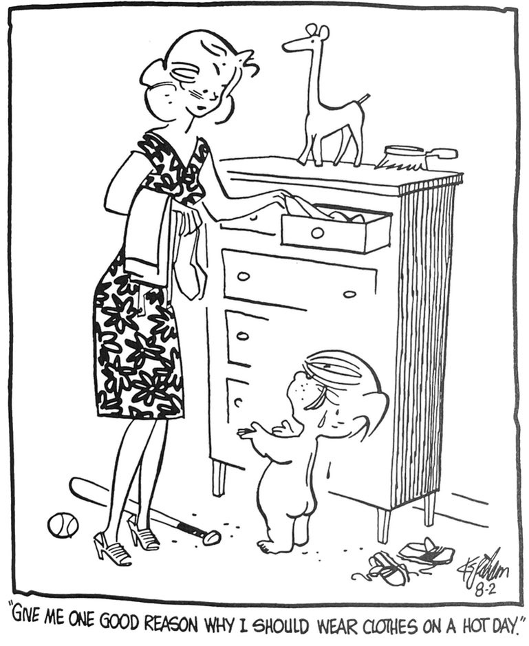 On March 12, 1951, Hank Ketcham’s Dennis the Menace premiered. Ketcham’s artistry only looked effortless. In fact, every aspect of the strip was thought through and expressive of the strip’s deeper joys. I wrote about this early last year, but resurfacing it for Dennis’s birthday. And here is a bit of 1950s gender studies, via Dennis.