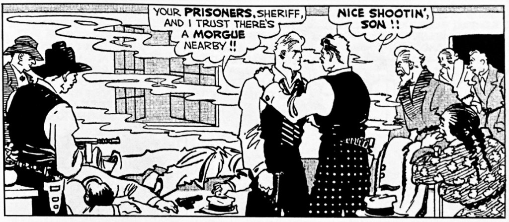 It at times Red Barry approached burlesque, that was part of the strip’s unique charm and world view. Chester Gould’s Dick Tracy villains were genuine grotesques, irredeemable evil-doers who eventual demise was deserved and necessary. Will Gould’s underworld is highly performative, filled with showy, tough-talkers always trying to project their hardness to maintain power.