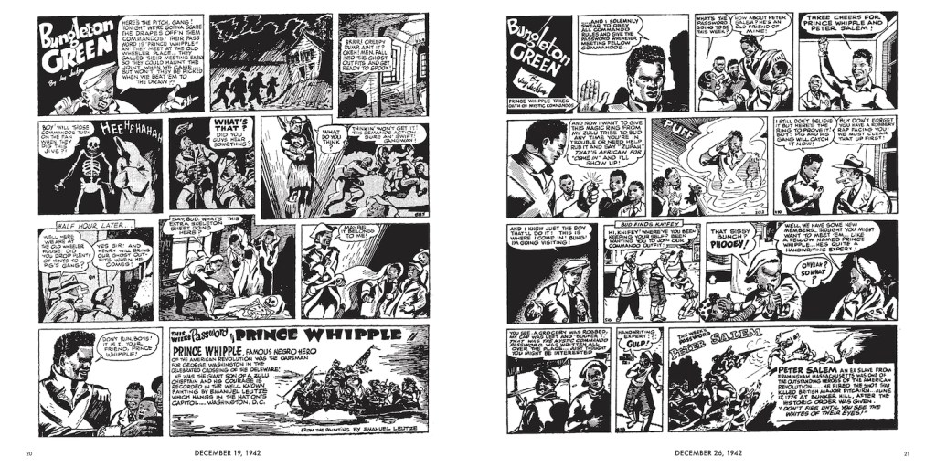 Bungleton Green and the Mystic Commandos. Most comic strip reprints are fun and useful to comics fans, but this New York Review Comics revival of Jay Jackson’s Bungleton Green is genuinely important. Formerly a gag strip in many Black newspapers during the 1930s, Jackson converted it into a seria adventure and expanded the cast to a multiethnic Mystic Commandos troupe for 1940s wartime. This crew of Nazi-hunting kid warriors became of the center of sci-fi storylines that time travel to fight racism past, present and future. It is quite a trip, and it foreshadows some of the Black sci-fi genre that is surging today. Surfacing the comics of overlooked minority newspapers is the next big project in comics history, and this reprint is a great example of how the comics could become fertile ground for important literary themes that flourished later.