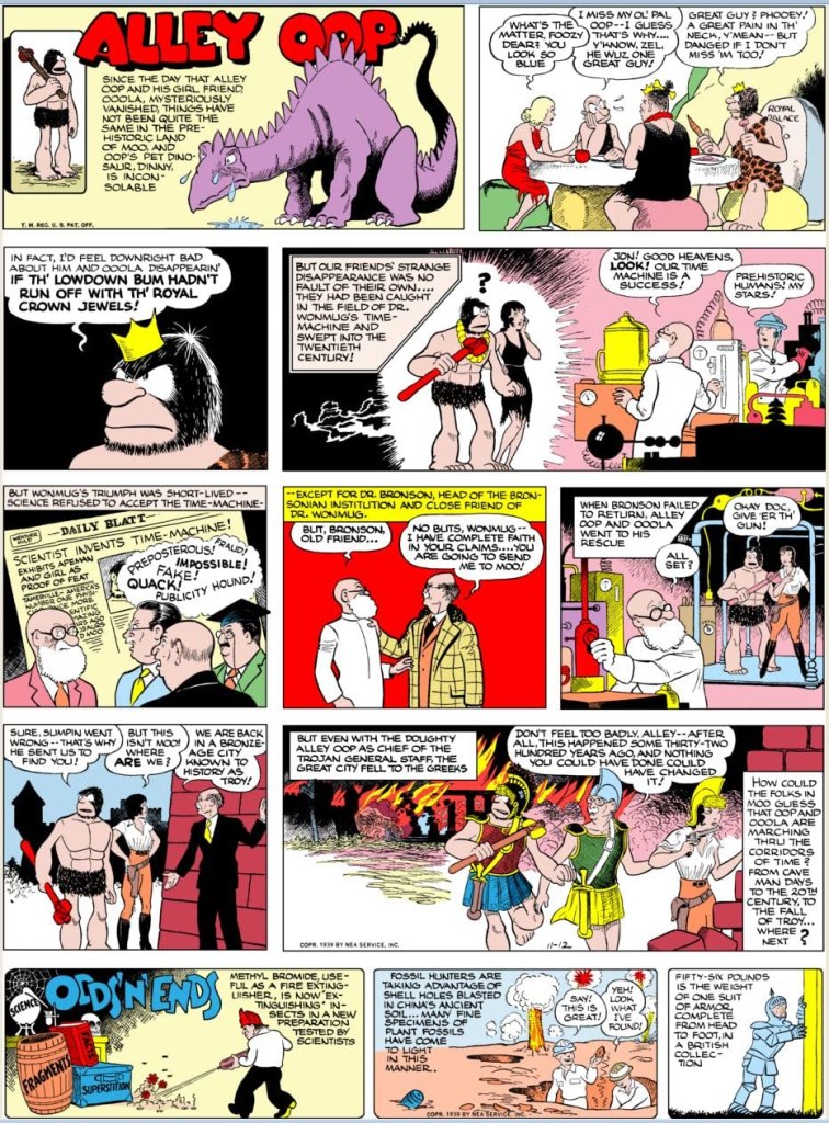 Alley Oop: The Complete Sundays Volume 3 (Alley Oop Goes Modern, 1939–1941) Alley Oop Races Blarney Goldfield Alley Oop and the Tiger Tail Transplant and Dave Graue Alley Oop Meets Draculina Alley Oop Versus the Black Knight. While most comic strip aficionados are well-acquainted with Pogo, Alley Oop was probably better known than fully appreciated. V.T. Hamlin’s prehistoric everyman is being generously and pristinely reprinted by Acoustic Learning on a very regular schedule. In parallel, they are reprinting with the later era of the 1970s when Dave Graue took over. In the latest volumes, Acoustic picks up the discontinued oversized Sundays reprints and follows Alley into his time-traveling during the 1950s. Hamlin’s Oop has a wry, populist sensibility in the guise of caveman ignorance that remains relevant and very American. This is a wonderful labor of love by Chris Aruffo. To support Chris more directly, you can buy direct from the publisher here.