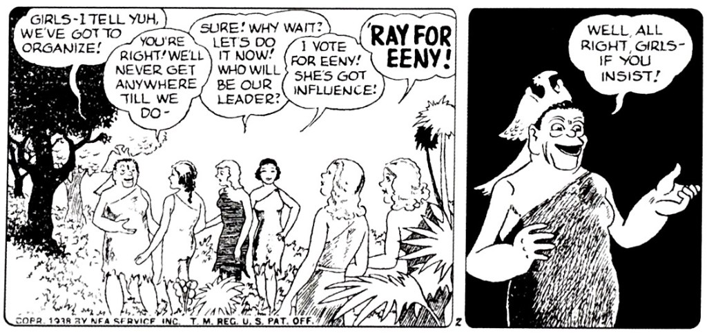 Alley Oop smells a rat. But Eeny craftily tries to co-opt her opposition and make Oop “Assistant Dictator,” a position Alley thinks will help him depose her.