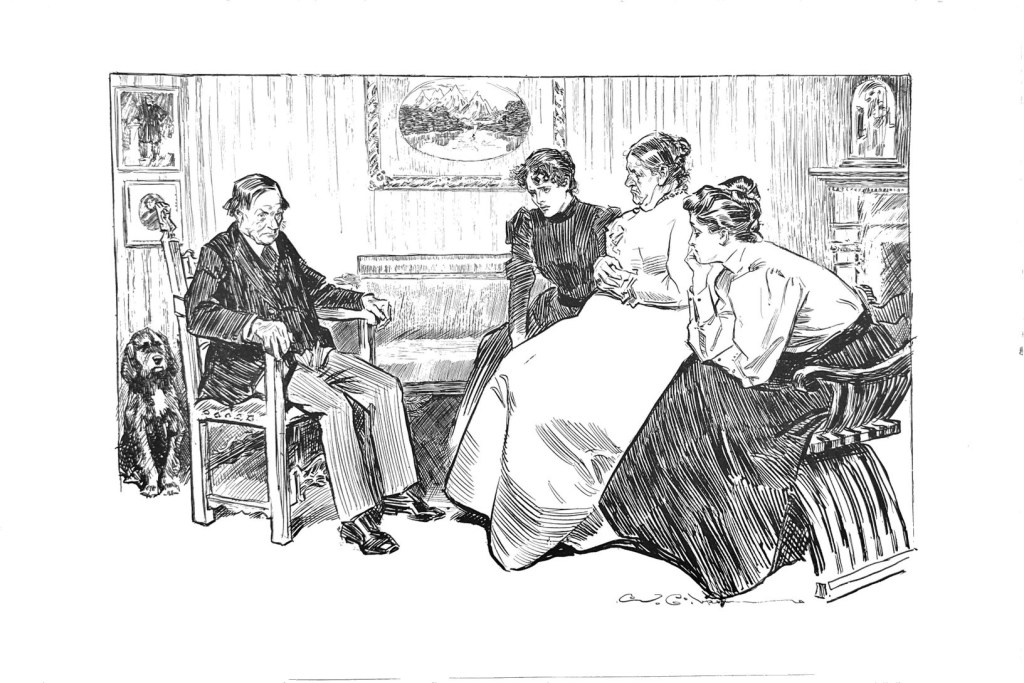 Compared to the raucous multi-ethnic action of Mssrs. Dirks, Outcault and Opper, Gibson’s light caricature of parlor room denizens and oh-so-white, oh-so-privileged young lovers may seem tepid. But Gibson was precisely the cartoonist the American bourgeoisie wanted, a master of subtlety and understatement that pricked so gently at the repressions and pomposities of a rising middle class struggling towards propriety. All of the action in Gibson’s world is registered by subtle facial expressions, minor posture shifts, the small outward expressions of unspoken emotion.