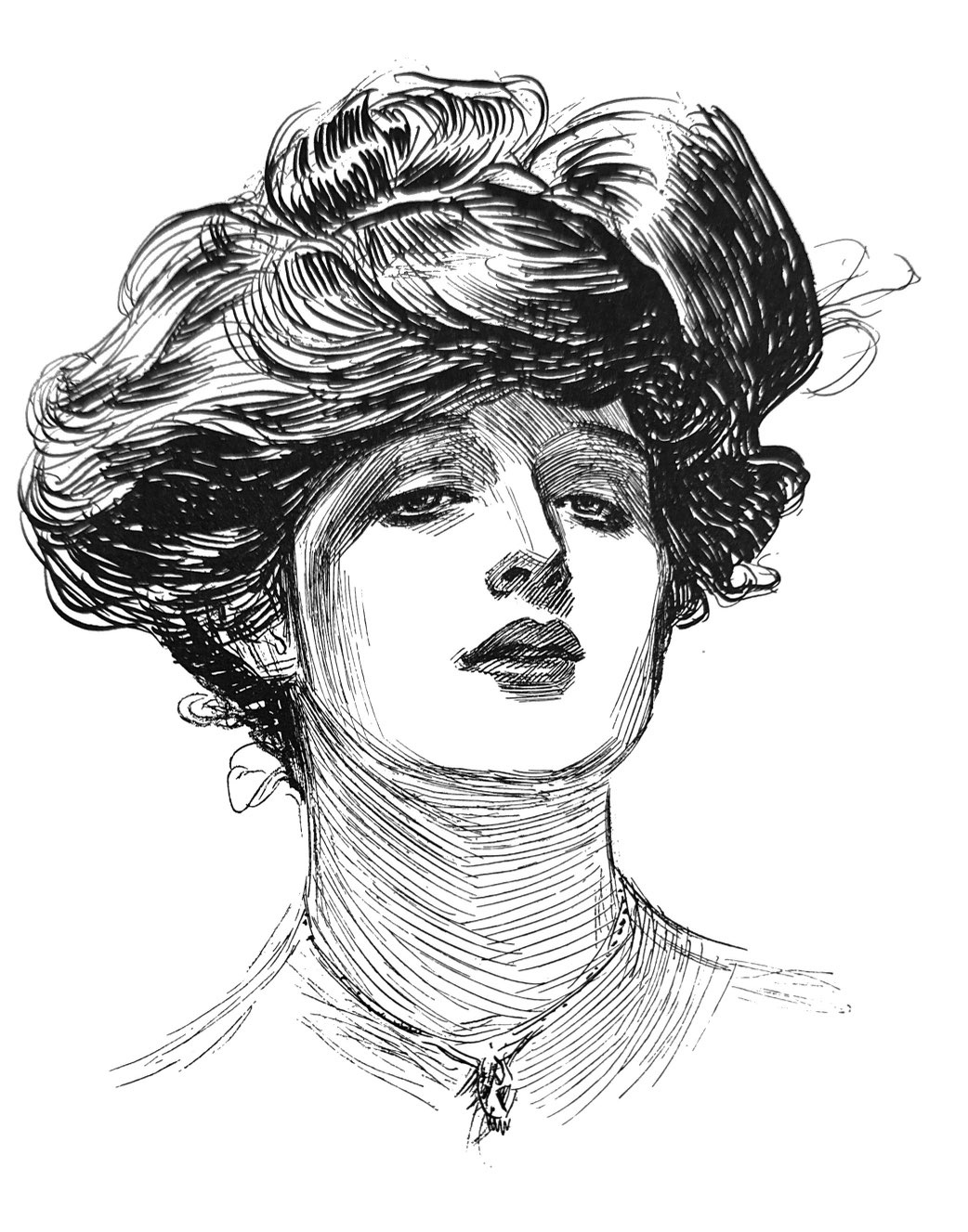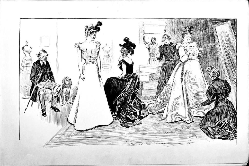 In many ways, Gibson was a master of surfacing repressed feelings. The famed Gibson Girl could be wildly erotic in a fully misdirected way. Her cheeks were full and freshly youthful – even fecund. Her droopy eyes were at once disinterested and lustful – even post-coital. The figure she couldn’t show in her heavily corseted and neck-high attire was often projected onto that curvy burst of hair. At times, Gibson let those tresses bulge atop her head and at others flow down out of its upswept bun into a languid form that resembled a naked body down a girl’s shoulder. And while the “girl” figure was most famous, Gibson put great attention to their courtiers, the youthful, eager, romantically charged men who pursued them. Sexuality was the subtext. Gibson was illustrating a young generation and an American culture on the cusp of greater expressiveness and outward emotion – the world the newspaper comic strip would prove better able to caricature.
