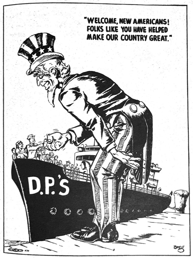 I don’t mean to recall some of these greatest examples of American propaganda to in any way diminish the work of the AJC and these cartoonists. The AJC artists were responding to a worldwide crisis for Jews and humanity. They were trying mightily to leverage the tools of political cartooning to align antiracism with democracy and American identity. And in our own critical moment in defense of these principles, even the best of their work reminds us how challenging it is to illustrate ideologies of decency.
