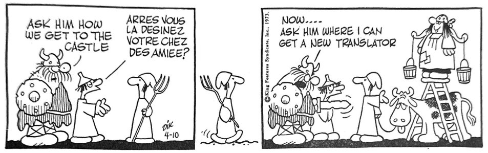 From Jimmy Swinnerton’s 1902 Mount Ararat, to V.T. Hamlin’s Alley Oop (1932) to Johnny Hart’s B.C. (1958), comic strips have explored modern manners in pre-modern worlds. In some sense, Hagar the Horrible was a bit of a welcome throwback itself. By putting his barbarian family in a pre-modern setting Browne (who was already in his mid-50s in the 1970s) was somehow able to revisit gender and family types that seemed out of place after the counter-culture. It allowed us to play with the fraying tropes of henpecking wives, bloviating hubbies, hapless underlings and suitors for a curvaceous daughter. Coming on the cusp of Doonesbury, Cathy or even For Better or For Worse, Hagar the Horrible was an anachronism that leveraged anachronism.