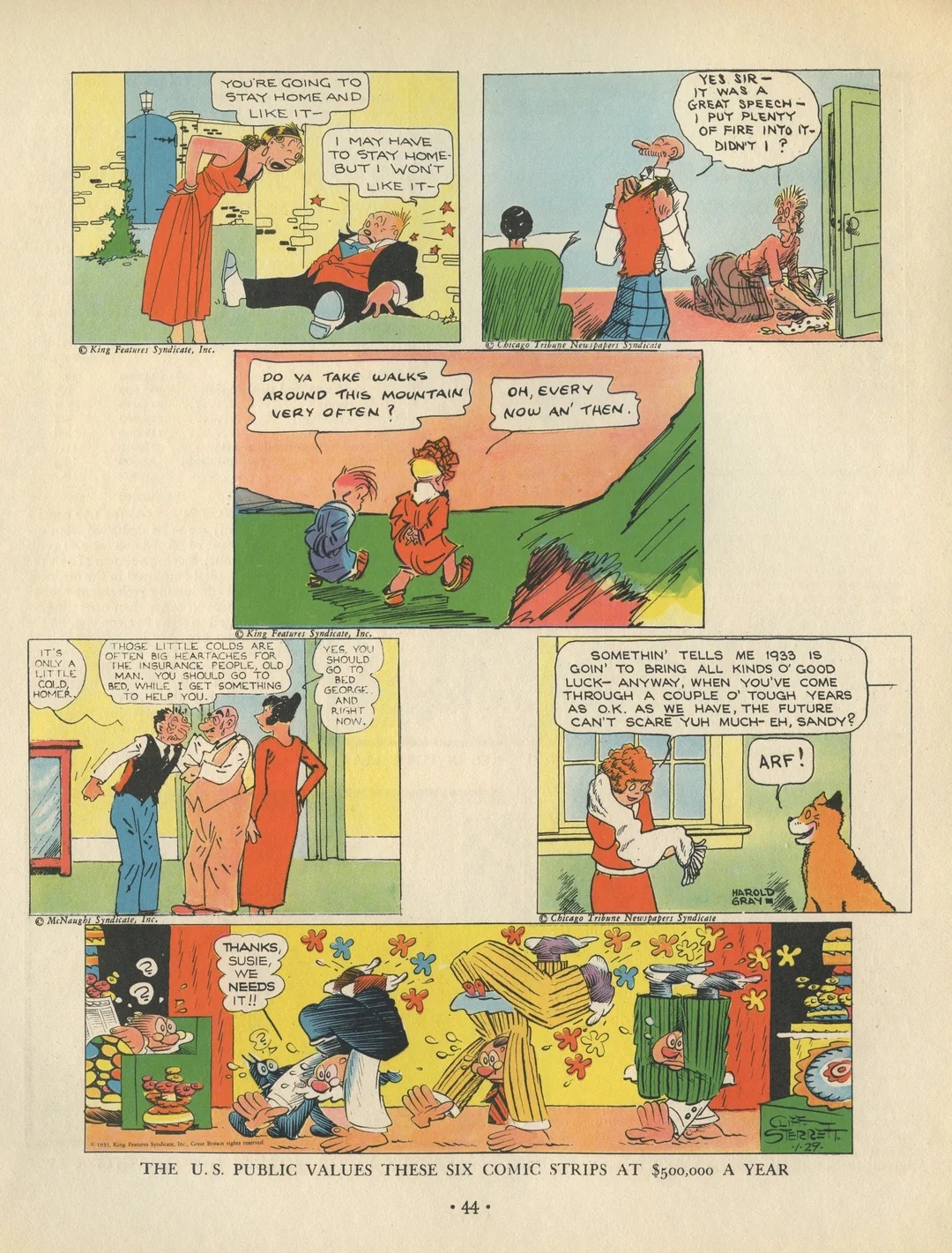 “But the [comic] strip has suffered from mass production and humor hardening into formula…. It has sacrificed its original spirit for spurious realism.” – “The Funny Papers”, Fortune Magazine, April, 1933.