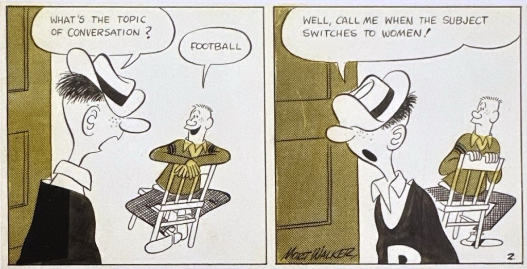 That is not quite the model for Mort Walker’s Beetle Bailey: 75 Years of Smiles, but won’t gripe about it. Mort’s son Brian is such a talented and insightful curator and analyst of comics history generally and this strip in particular (which he co-created for many years) that his history of Beetle is an unusually thoughtful “celebration.” He walks us through the transformation Beetle as a college goofball and hound dog into the world’s most famous Army slacker. We get a ton of original art, marketing and merchandising offshoots, as well as a good-enough sampling of key strips in each decade. We go behind the scenes on the creative process and workflow. As in his other work on comics history, Brian Walker is very sensitive to the ways in which Beetle Bailey intersected with evolving attitudes towards the military, race, sexual relations. Like many American strips of the 60s and 70s, Beetle Bailey tried to register surrounding social change with delayed response and diffusion. Lt. Flap instructs Gen. Halftrack on the proper form of Black Power salute as a gag, without naming it, and several years after the gesture was made controversial at the 1968 Olympics. And let’s not even start on how Miss Buxley somehow finds feminism. But that of course is the whole spirit of Beetle Bailey, and why this five-decade dance across its run is valuable.