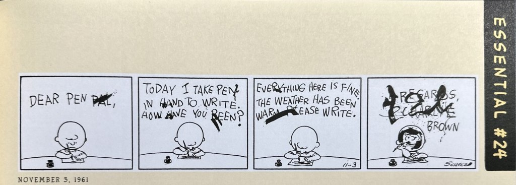 The Essential Peanuts is very much a collectors’ item. The boxed package includes ephemera like stickers, postcards and even the a replica of the embroidered Snoope spacesuit patch worn by the Apollo launch crew. Regardless, hats off to Evanier for making this an unusually thoughtful collection. In addition to identifying key moments and tropes in Schulz’s approach to cartooning, he packs around the “Essentials” many insightful quotes and insights from the creator himself and many fellow cartoonists. You will learn something from this commemoration.