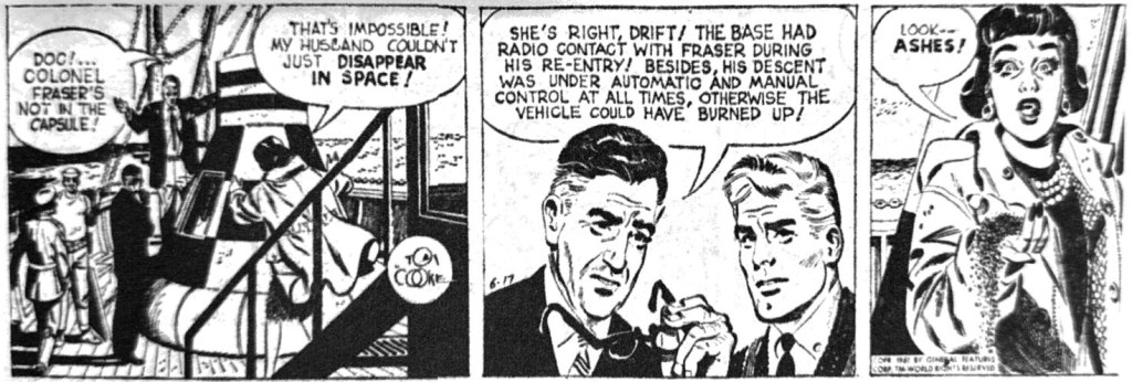 One doesn’t usually picture a government security officer as an adventure heartthrob, but the post WWII era of corporate and governmental authority could reimagine organization men into heroes. The short-lived (1961-1964) Drift Marlo cashed in on the US/USSR “space race” even though most of its action was standard detective/espionage fare that happened to revolve around a rocket base. The blonde, square-jawed Adonis Drift shares more with Peter Gunn and James Bond than he does with Sky Masters of the Space Force. He calls women “babe” and “beautiful” more than a grown man should, but the Phil Evans scripting is as shallow as our hero. Not to mention that artist Tom Cooke was no Jack Kirby or Wally Wood. The art is of the era’s no-nonsense realist style, serviceable to advance the story and only interesting when it lingers on a pretty woman’s face. But kudos to About Comics’ publisher Nat Gertler, for resurfacing this one at an affordable $15 to include several full story arcs. It is a good example of a light-noirish style of that moment in pop culture.