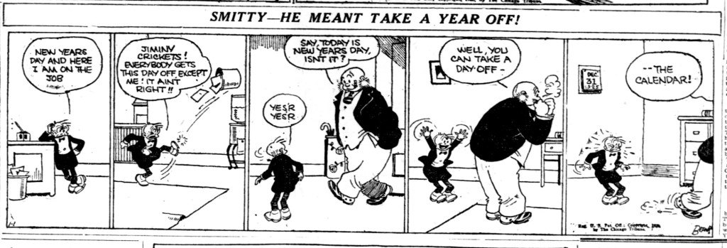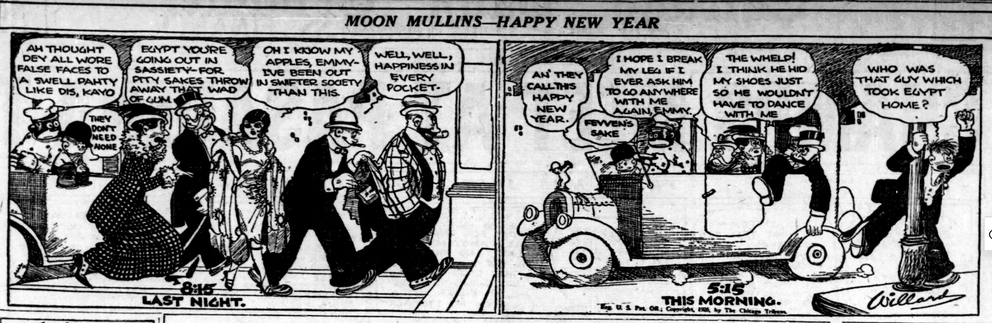 And in the funny pages of 1926, The Chicago Daily Tribune featured some of the country’s favorite characters engaging in the party to comic effect. The Gasoline Alley gang, Harold Teen, Smitty, Moon Mullins – all share their New Year’s Eve tales.