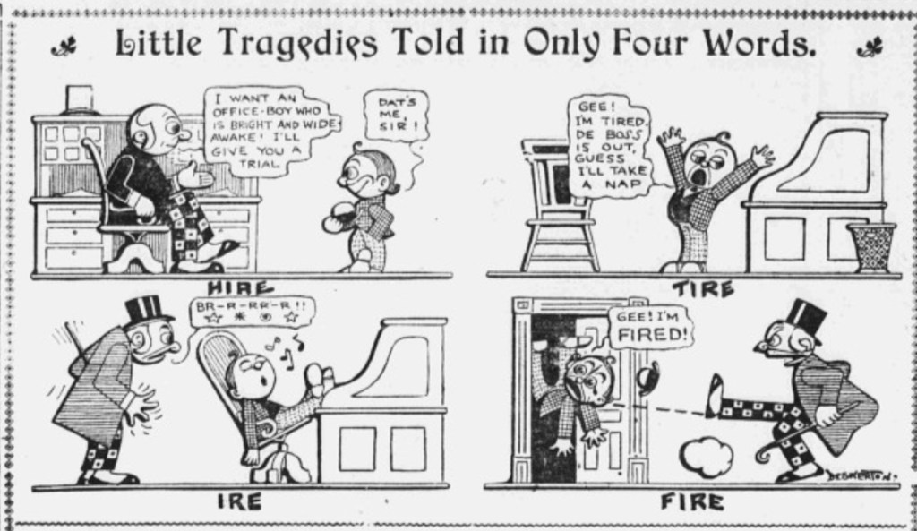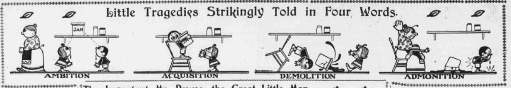 In 1903 the strip starts out staying true to its basic conceit. It uses cute rhyming wordplay and pantomime to create a lightning fast gag about human nature and everyday mishaps.